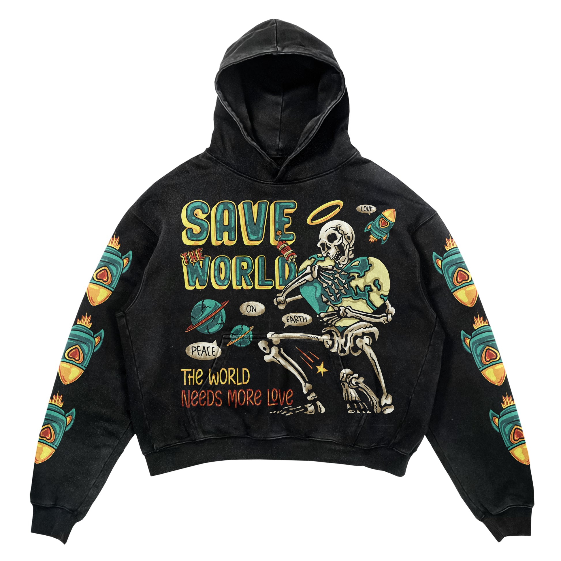 World Peace Volume 2 is available now! This version of the WP graphic collection features immense detail on the torso, both sleeves, and pouch pocket all layered on our acid washed hoodies with minor distress. Featuring a mix of vibrant colors and custom graphic design.